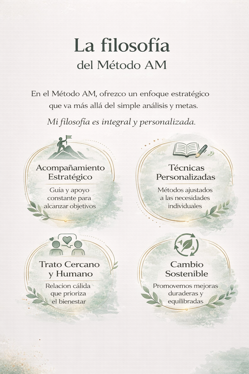 La idea principal de nuestro método es ir más allá de la organización o la motivación aislada. Reconocemos que el adolescente está inmerso en un ecosistema familiar y educativo que influye directamente en su desarrollo. Por ello, el Método AM no solo enseña herramientas prácticas para la organización y la gestión del tiempo, sino que también orienta a la familia para un acompañamiento coherente y equilibrado. No se trata de controlar más, sino de acompañar mejor, fomentando la autonomía y la responsabilidad.